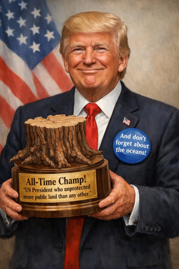 Right now, President Trump is on a fast-track to achieve something that no other in The White House has notched, and some might call it an achievement of dubious distinction that Americans now and long into the future will never forget. He is, at present, the all-time champ for un-protecting more public lands, waters and ocean marine sanctuaries than any other President.