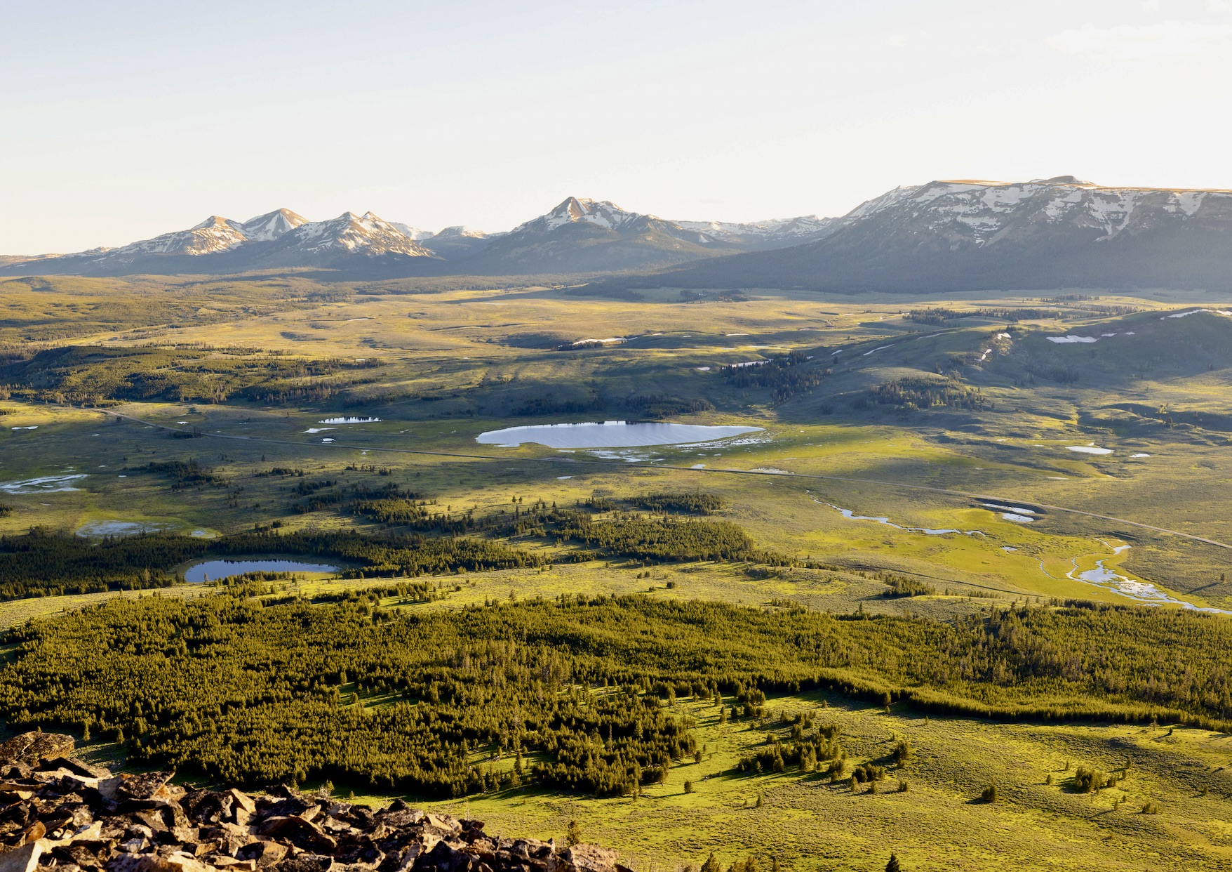 The northwestern corner of Yellowstone looking west from Bunsen Peak. it's incredibly important spring and summer habitat for a variety of beloved public wildlife. The Gallatin Range, on the horizon, runs from this part of Wyoming across the state line and into the Custer Gallatin National Forest. It is a biological extension of America's first national park and vital to the movement of wildlife. Notable people like Gifford Pinchot, first Forest Service chief, and elk biologist Olaus J. Murie a century ago said the Gallatins needed heightened protection. Photo courtesy Jacob W. Frank/NPS