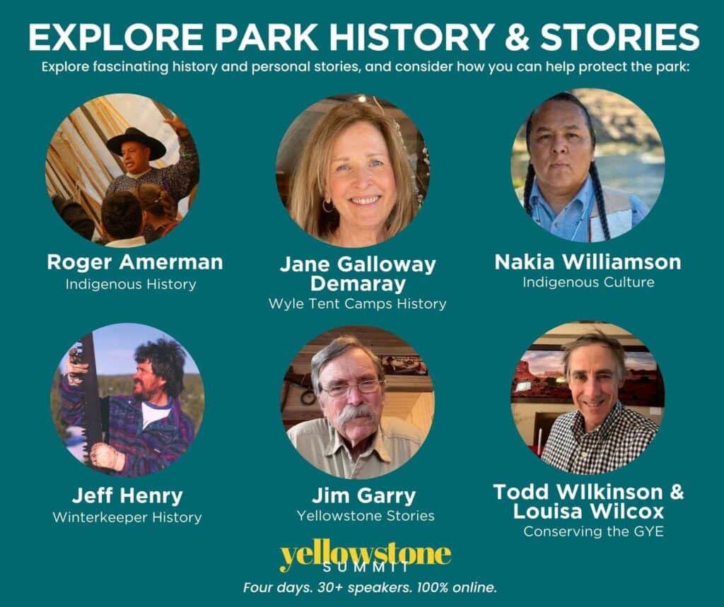 JENNY GOLDING: The Summit is hotly anticipated each year and brings unparalleled stories, personalities, and information about the Park that would not be accessible almost any other way. The Summit has found its way into the homes of Yellowstone lovers in all 50 states and countries across the  world. We receive a flood of inquiring emails and over-the-top feedback from participants from past events wanting to know when registration opens each year, and where they can get more! For many, the Summit is a bit of a homecoming; a way to experience Yellowstone whether they can get to the park in person or not. Attendees tell us that the “Yellowstone fix”  so many yearn for to span gaps between visits, is  filled in special ways by this online event.
