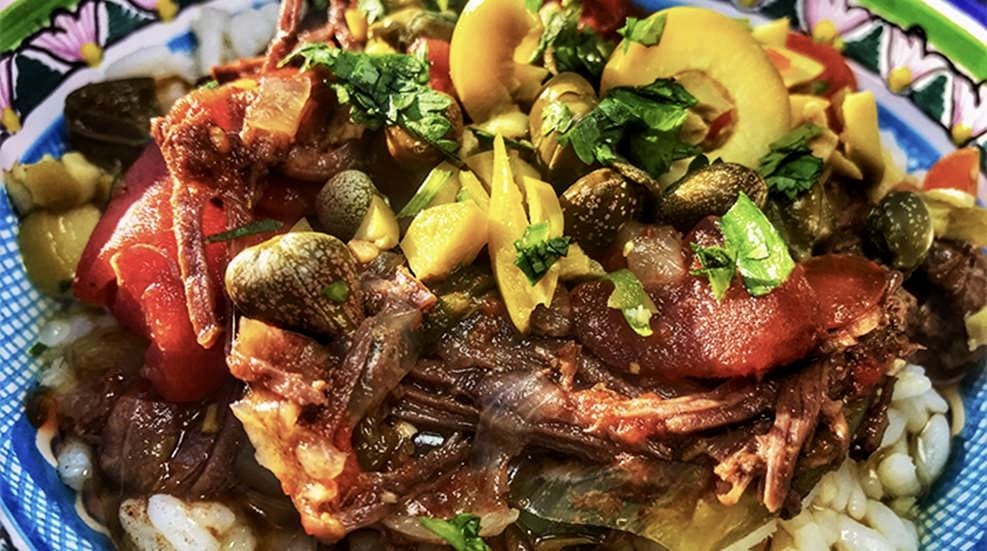 McMILLION: Ropa Vieja means “old clothes” in Spanish, and it might be a good idea to wear some when you’re cooking and eating this. It can get kind of messy. It’s a common dish throughout Latin America, where fatty beef shoulder is usually the main ingredient. I like this Cuban variety, with the salty tang of the pimentos and capers.