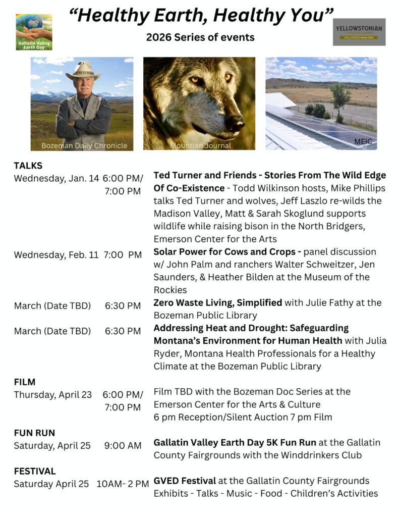 Back by popular demand, Gallatin Valley Earth Day and co-host Yellowstonian is returning in 2026 with a provocative line-up of live-streamed public events revolving around issues in Greater Yellowstone, the future of the wild West and ways each of us can be more impactful, sustainable citizens.