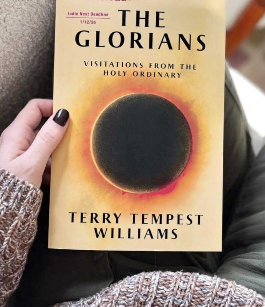 Advocate, as in reminding rattled Westerners that there’s power, healing and inspiration when one stands unwaveringly on the side of nature, even when loss brings heartbreak. Williams’ new critically-acclaimed book The Glorians: Visitations from the Holy Ordinary is not only her most important but is also her most timely.