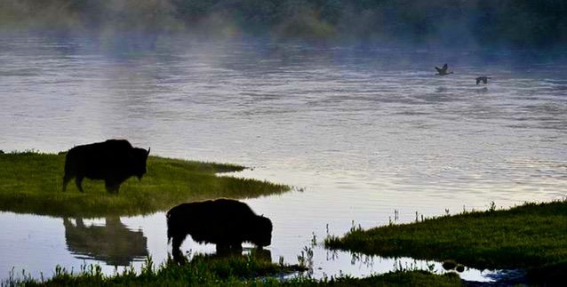 Bison take a drink along the Yellowstone River, known to some indigenous people as Elk River. Photo by Steven Fuller